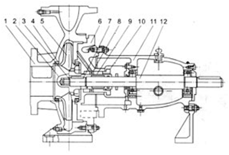 機封密封:泵蓋內設有機封函,采用軟機封密封,機封函內可通入有一定壓力的水,供密封冷卻,潤滑、清洗用。