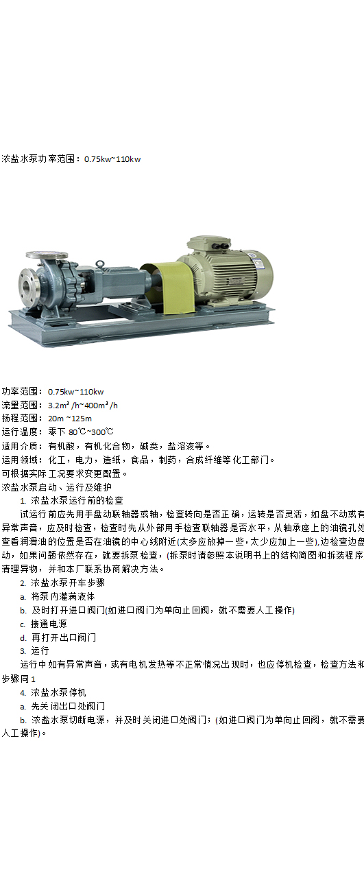濃鹽水泵功率范圍:0.75kw~11…